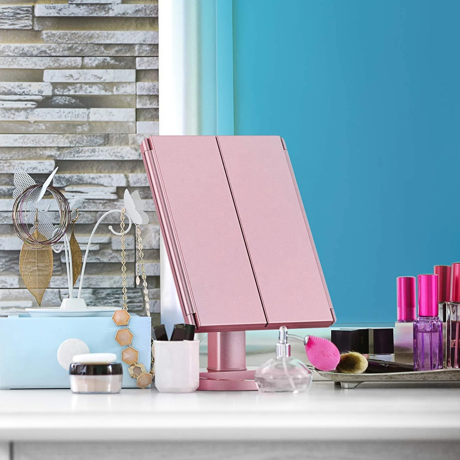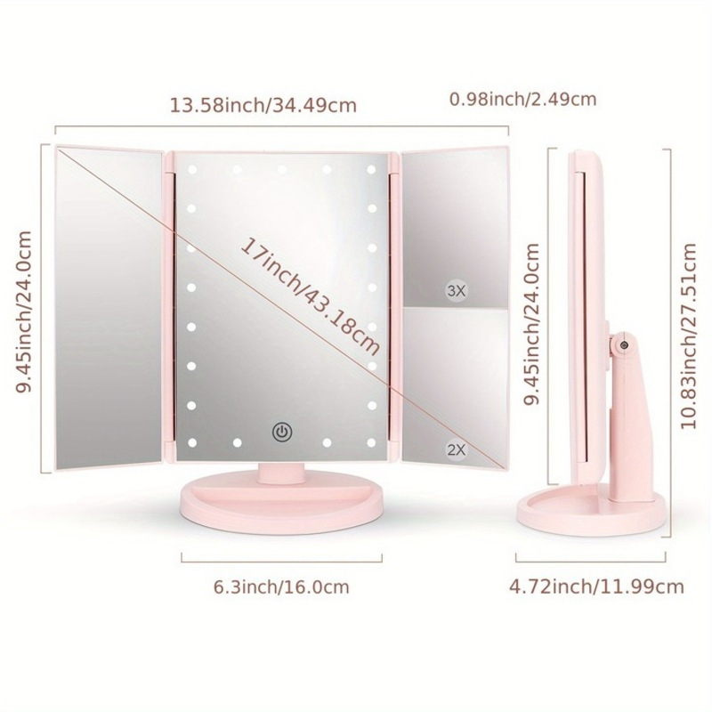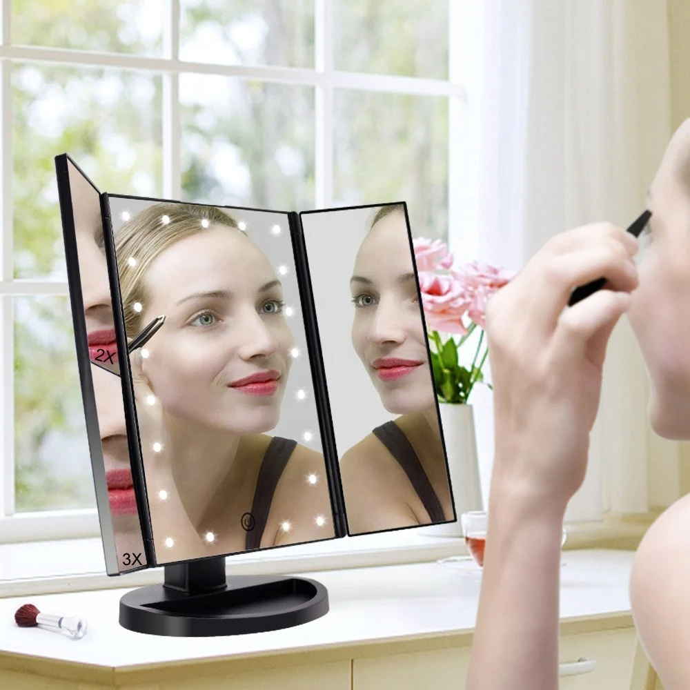 Oglinda Profesionala cu LED pentru Machiaj si Ingrijire | 3 Oglinzi Pliabile, Reglabila, Touch Control Pentru un machiaj perfect in orice conditii de lumina!