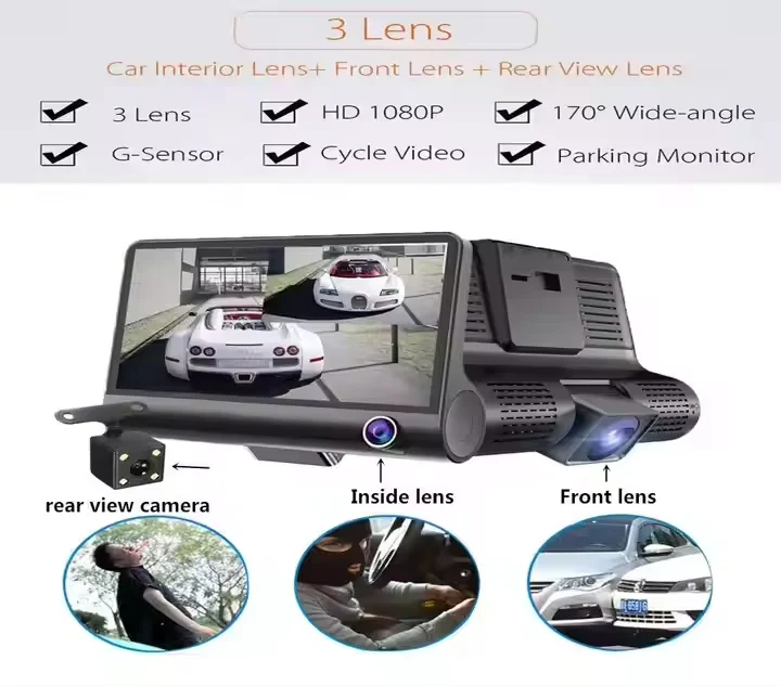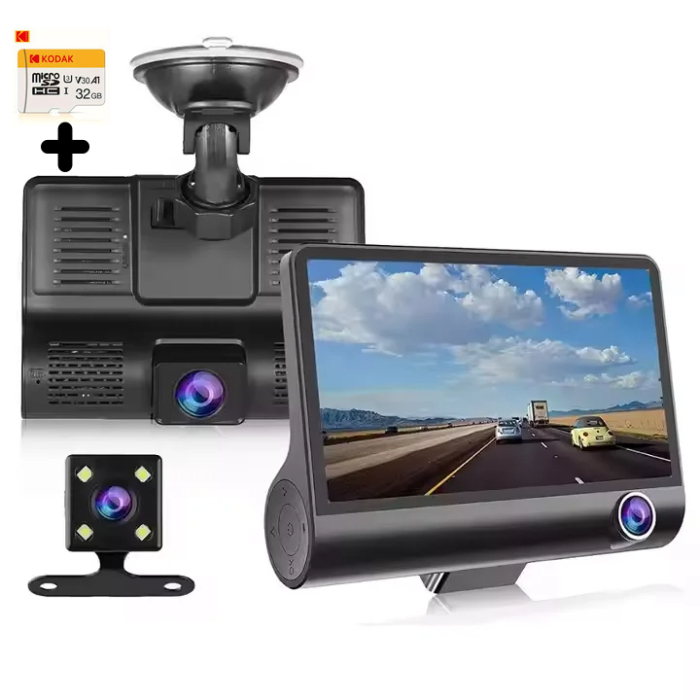 🚗 Camera Auto Triple Cu Display 4" | Securitate Totală pe Șosea 🛡️
