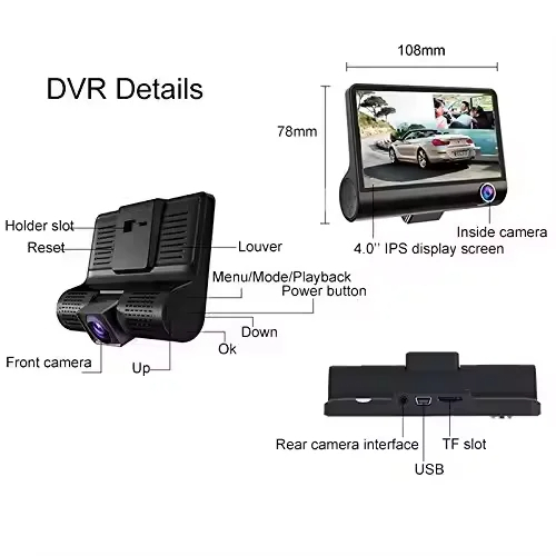 Transformă-ți mașina într-o fortăreață de securitate cu această cameră auto 3-în-1! Echipată cu trei camere (față, spate, interior) și un display color de 4 inch, acest dispozitiv îți oferă o monitorizare completă a traficului, a pasagerilor și a manevrelor periculoase. Capturează imagini cristaline în Full HD 1280x720 pentru camera față și rezoluție standard pentru celelalte unghiuri, asigurându-ți dovezi clare în orice situație.