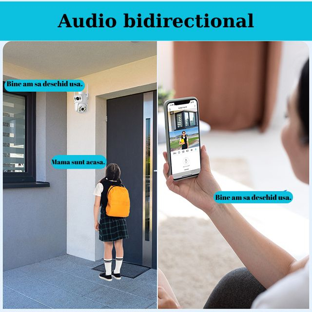 🔹 Vedere nocturnă 30m, alarmă instantă pe telefon și audio bidirecțional.