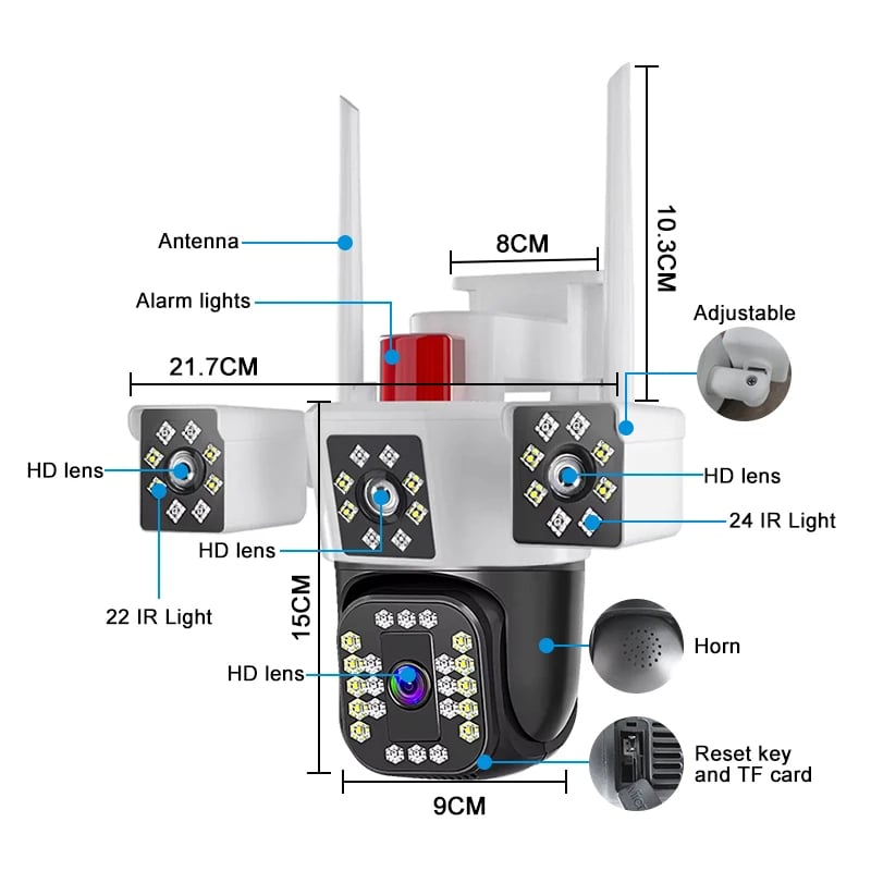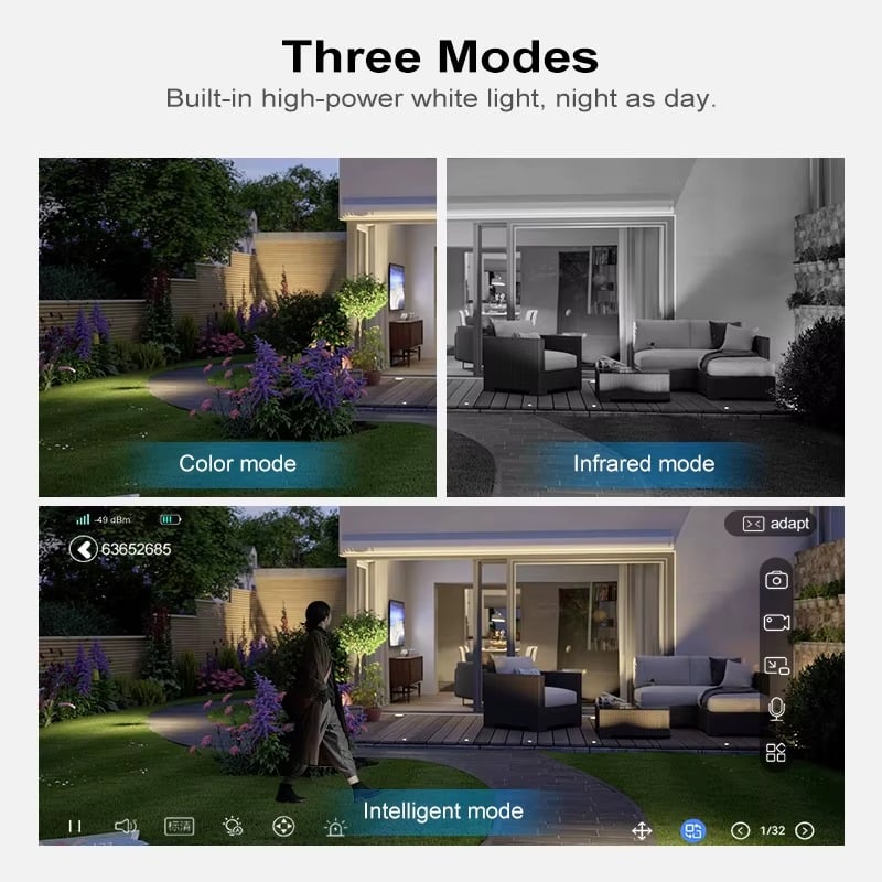 ✓ 3 moduri nocturne: Infraroșu 30m + Color + Smart IR