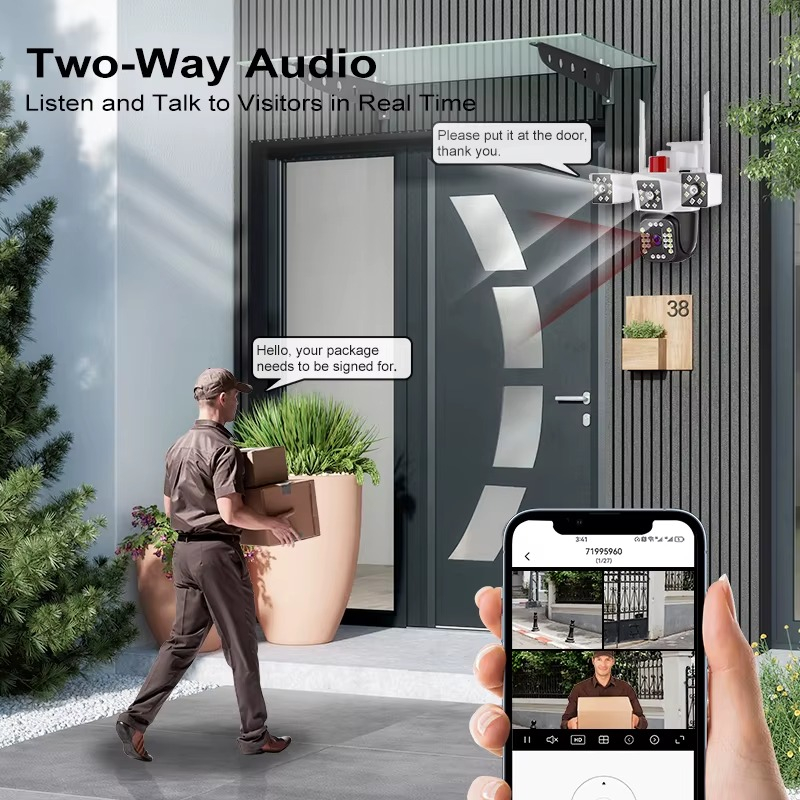 • 🎤 Audio bidirecțional – Vorbește cu vizitatorii sau avertizează intrusii