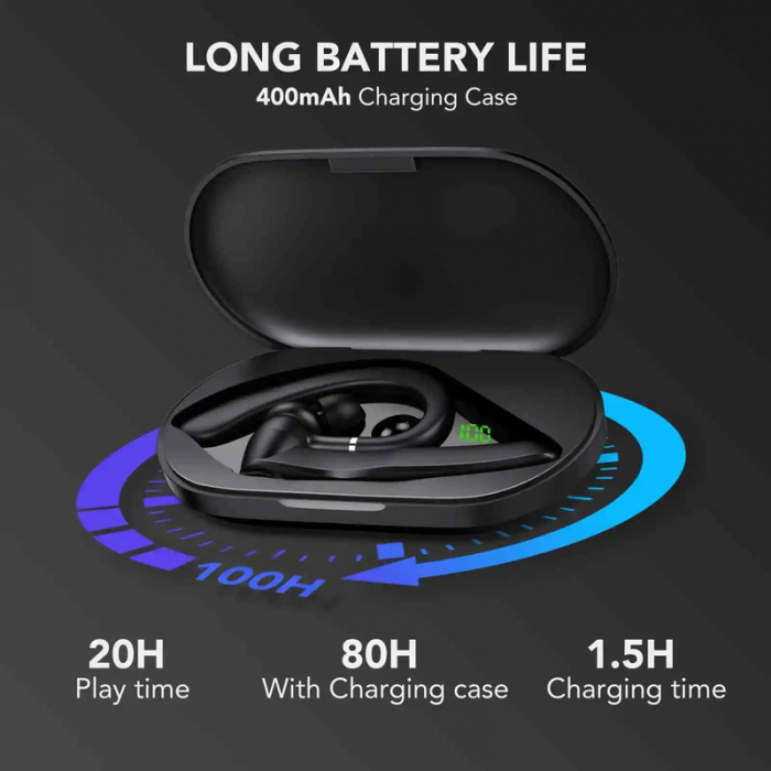✔ Autonomie record 80h (20h cască + 60h carcasă)