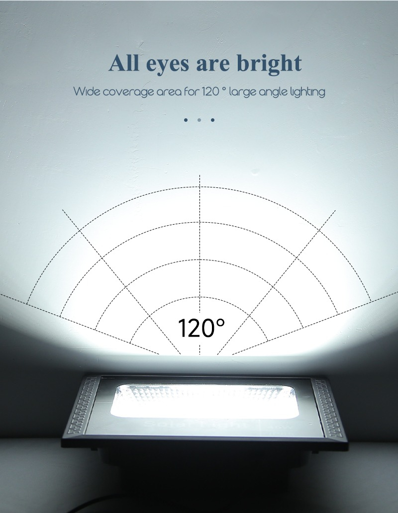 Lampa solara de exterior 300 W, Proiector cu 348 LED SMD, cu Telecomanda si senzor lumina, panou solar inclus